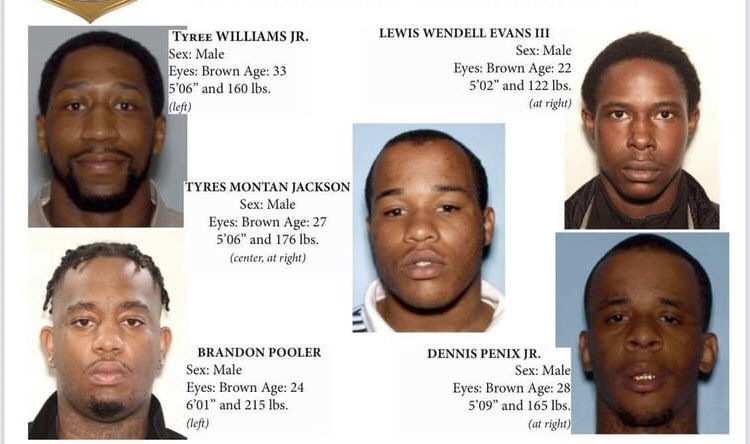UPDATE: Tyres Jackson and Lewis Evans are now in custody in Warner Robins. Police are still searching for the 3 other escaped inmates. The U.S. Marshals Service is offering a reward of up to $5000.00 for information leading to the direct arrest of any of the wanted escapees.
