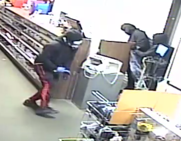 According to reports, five masked burglars entered Powell’s Pharmacy, located at 4839 Bloomfield Road around 5:29am Wednesday by breaking a glass door. Upon entry, the thieves attempted to gain entry into the secured medicine area, but were unsuccessful. They stole a cash register with an undisclosed amount of cash and left the store in a silver Ford Edge. The vehicle’s tag was missing during this incident.